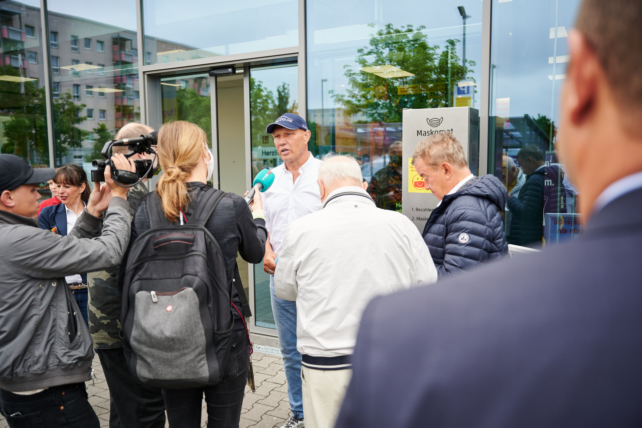 Begeistert von der Idee ist auch Box-Legende Axel Schulz, der den Maskomaten heute einweihte: „Eine richtig gute Idee. So einen Maskomaten hätte ich in den letzten Wochen häufiger brauchen können. Das macht das Einkaufen deutlich einfacher. Dieses Angebot ist ein richtiger guter Treffer.“