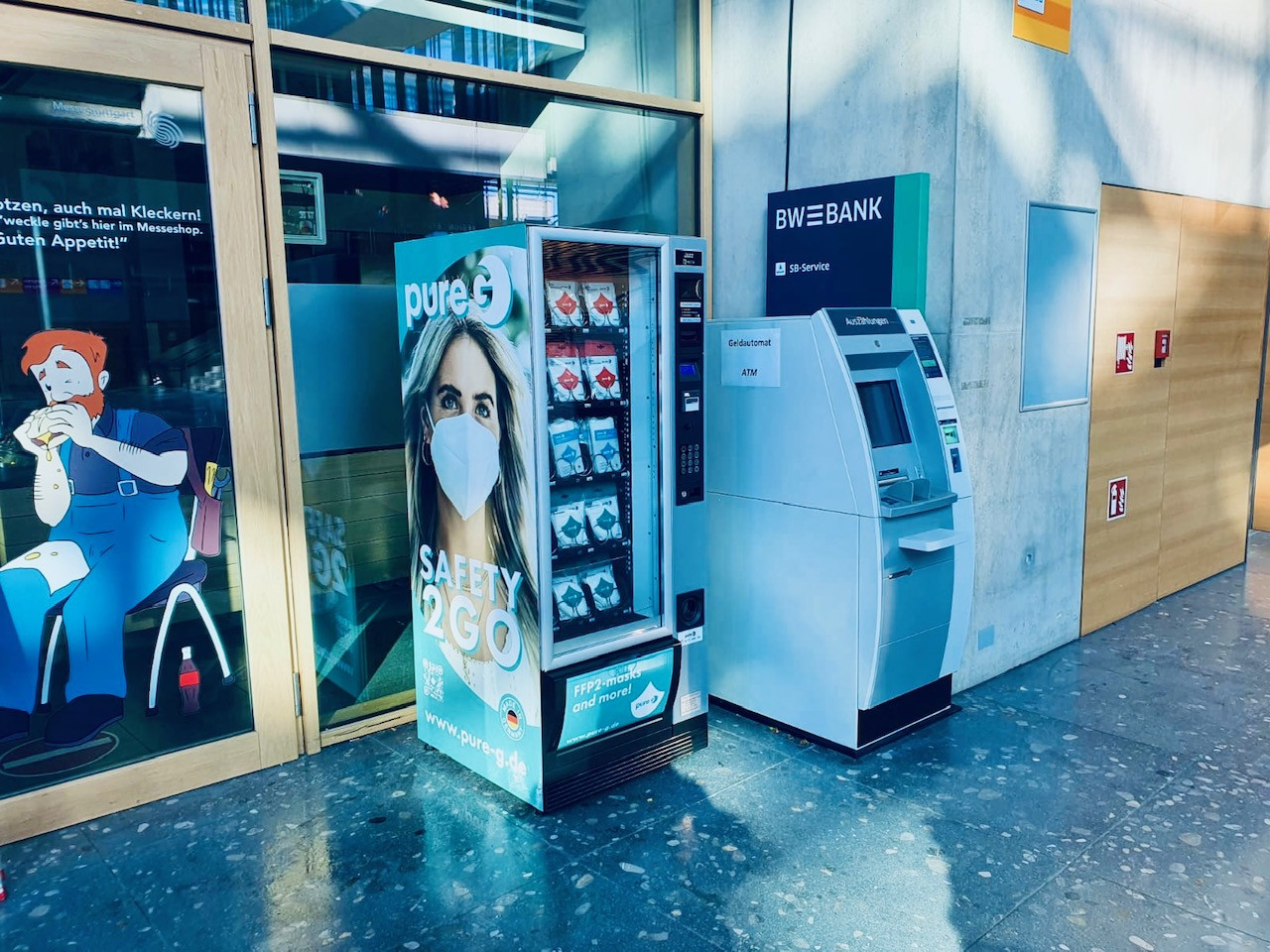 Flavura Masken Automaten, Warenautomaten & Verkaufsautomaten für FFP2 Masken aus dem Automaten, sind ab sofort auf dem Gelände der Messe Stuttgart via Gehring Healthcare im Einsatz.