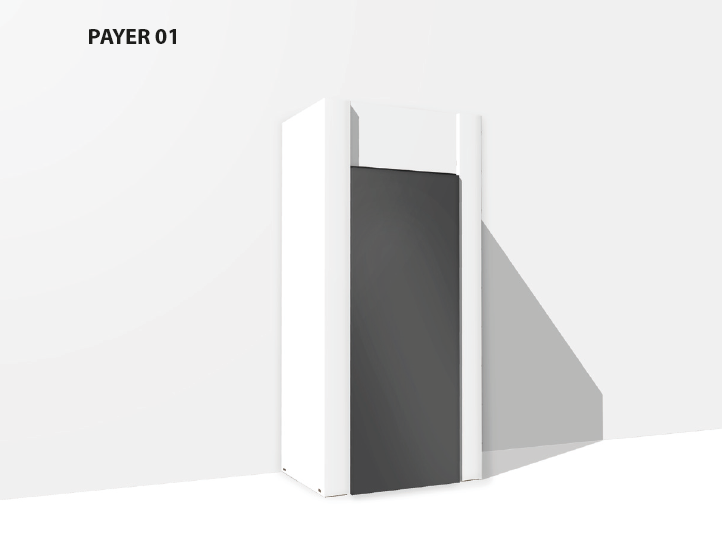 Das Modell Payer wurde als Umhausung und Verkleidung aus Karton für Vending Automaten und Automatenstationen entworfen, um jeden Automaten zwischen zwei bedruckten Kolonnen einzureihen. Im oberen Bereich gibt es eine Schiebeplatte, die das Einfügen der Automaten erleichtert. Ferner verfügt die Rückseite des Modelles Payer über ein Rückenteil, das, sofern es sichtbar platziert wird, auch in voller Höhe bedruckt werden kann.