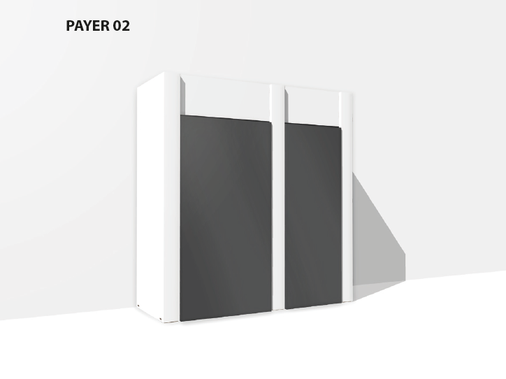 Das Modell Payer wurde als Umhausung und Verkleidung aus Karton für Vending Automaten und Automatenstationen entworfen, um jeden Automaten zwischen zwei bedruckten Kolonnen einzureihen. Im oberen Bereich gibt es eine Schiebeplatte, die das Einfügen der Automaten erleichtert. Ferner verfügt die Rückseite des Modelles Payer über ein Rückenteil, das, sofern es sichtbar platziert wird, auch in voller Höhe bedruckt werden kann.