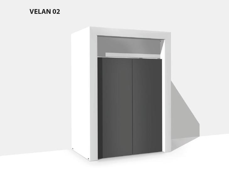 Das Modell Velan wurde als Umhausung und Verkleidung aus Karton für Vending Automaten und Automatenstationen entworfen, um einzelne Automaten als kompakte Einheit auftreten zu lassen. Die Automaten werden von einem oberen Balken eingeschlossen. Unterhalb des Balkens ist eine Fläche für Informationen angebracht. Der Balken ist vorgerüstet und kann mit LED-Beleuchtungselementen besetzt werden, um die Vending Automaten zu beleuchten.